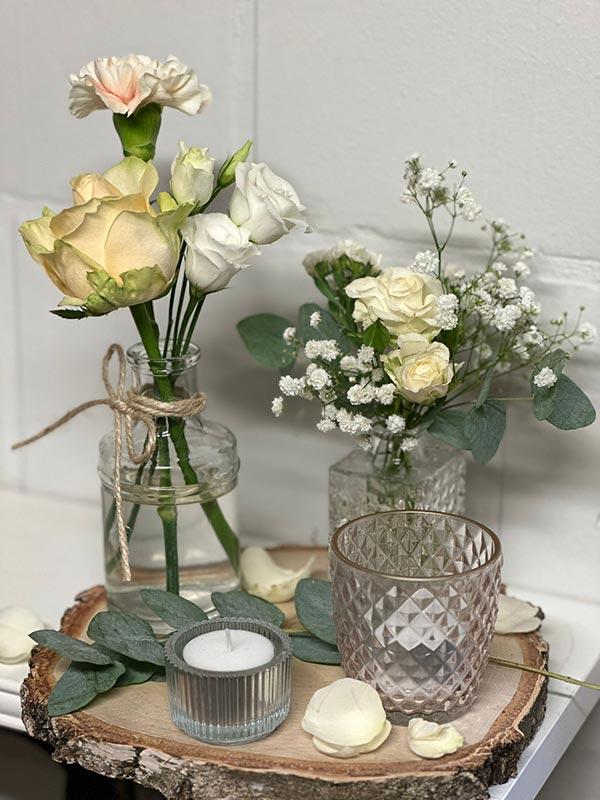 Bij Fleurtop zorgen wij voor de perfecte bloemendecoratie om je feest of evenement nog specialer te maken. Alle bloemstukken zijn zorgvuldig samengesteld om een stijlvolle en feestelijke sfeer te creëren die past bij de gelegenheid. Tafelvaasjes kunnen ook gewoon gehuurd worden.